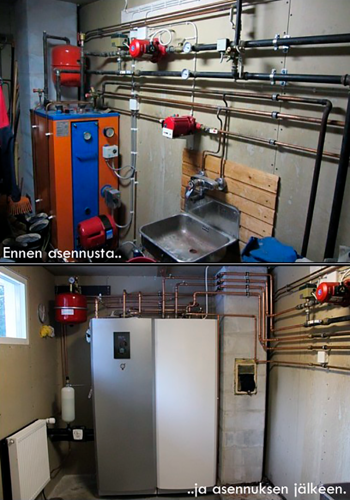 Thermia Maalämpöjärjestelmä asennettuna öljykattilan tilalle omakotitalossa Kauhajoella.